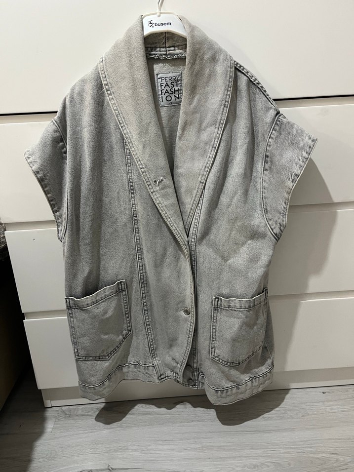 Gri Kadın oversize Denim Ceket Düğmeli Midi Boy