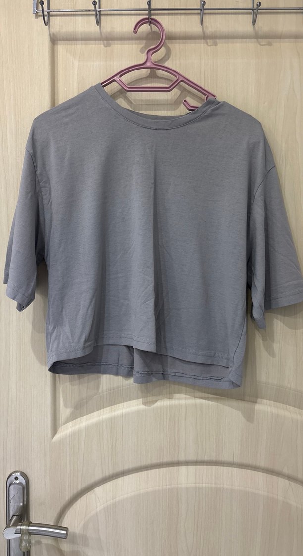 Gri renk, kısa kollu, yuvarlak yakalı ve oversize kesimli pamuklu tişört. Minimalist ve normcore tarzıyla günlük kullanıma uygun.