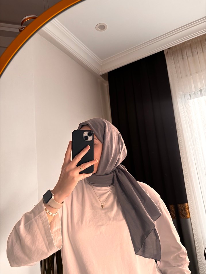 Pamukkumaştan gri renkte kadın şal, minimal ve rahat şıklık sunar, tesettür sokak modasına uygundur. ️