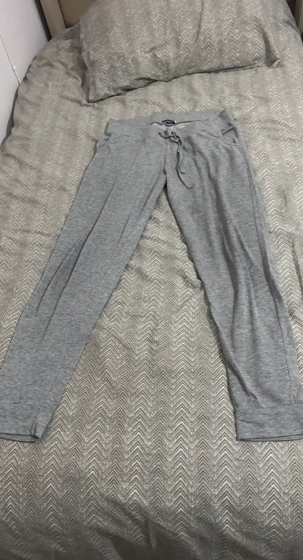 Pamuklu, gri, rahat kesim ve normal boyda kadın eşofman. Desensiz ve günlük spor şıklığı sunar. Küçük bi çay lekesi var