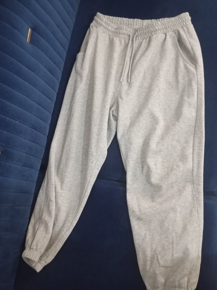Gri pamuklu eşofman, bol kesim, lastikli bel ve paçalarla günlük rahatlık ve zahmetsiz şıklık sunar.