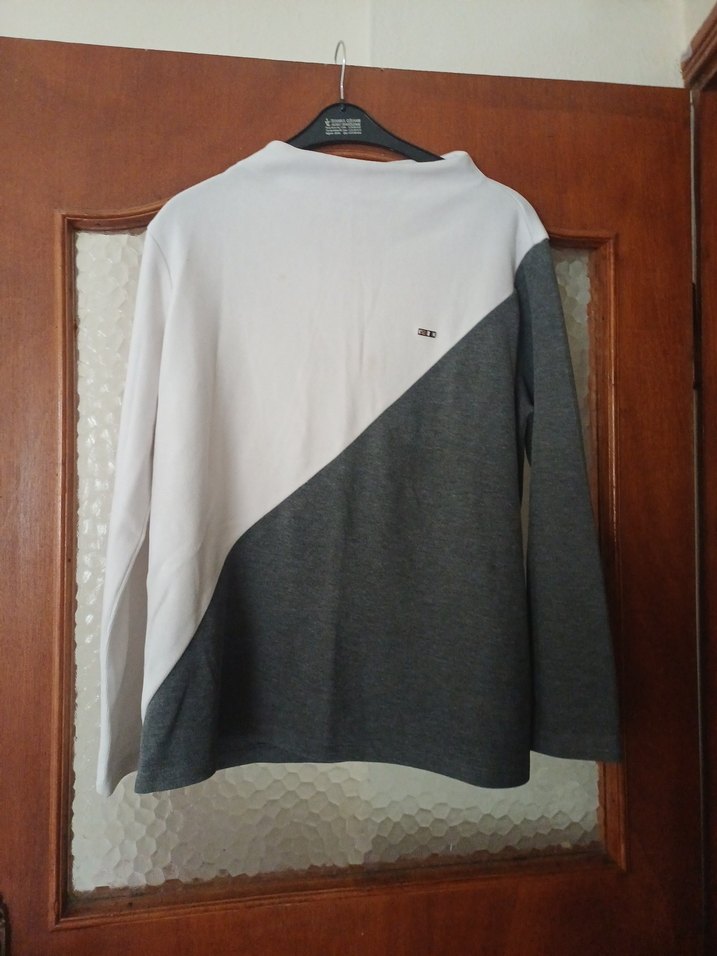 Gri tonlarında renk bloklu, pamuklu kumaştan üretilmiş, uzun kollu ve yuvarlak yakalı kadin sweatshirt. Rahat kesimi ve günlük sokak stiline uygun şık görünümüyle öne çıkar.