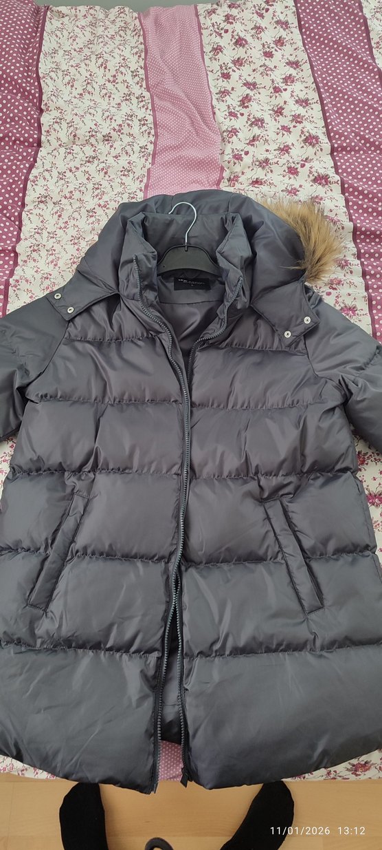Gri Kadın Peluş Detaylı Kış Montu 2 defa giyildi genış kalıp