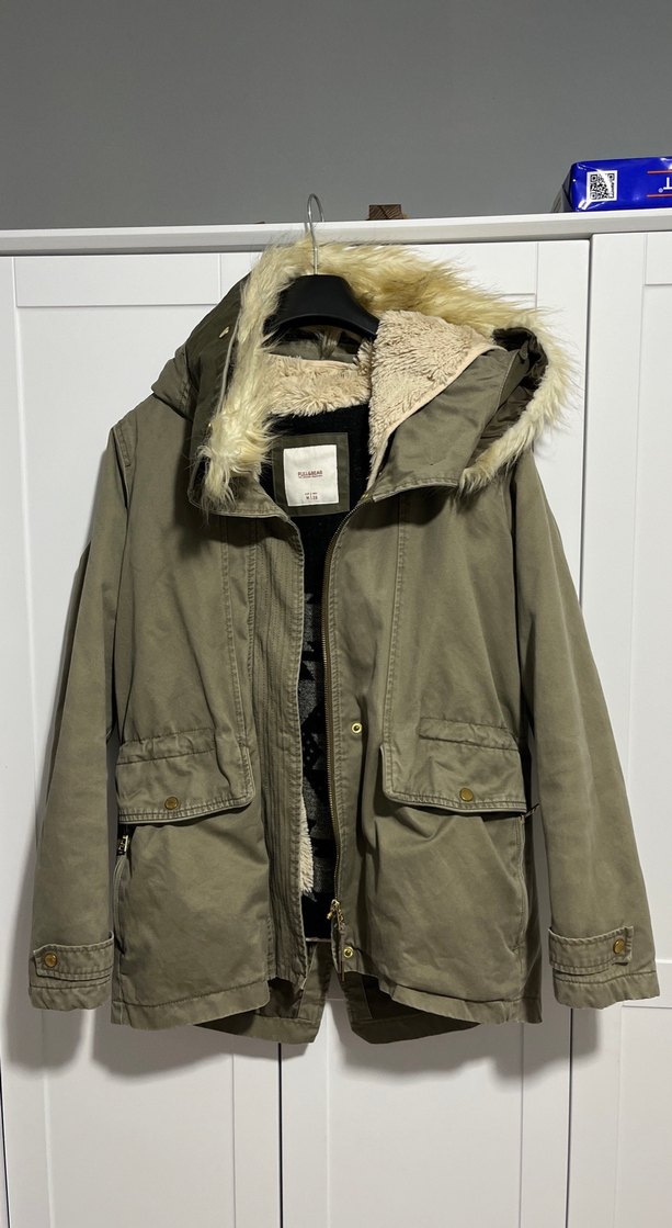 Gri renkte, peluş detaylı kapüşonlu, bol kesim, yakası kesimli, uzun kollu midi uzunlukta kadın ceket. Yumuşak ve sıcak kumaştan üretilmiştir. içindeki peluşu çıkıyor ve kapşonundaki peluş da çıkıyor