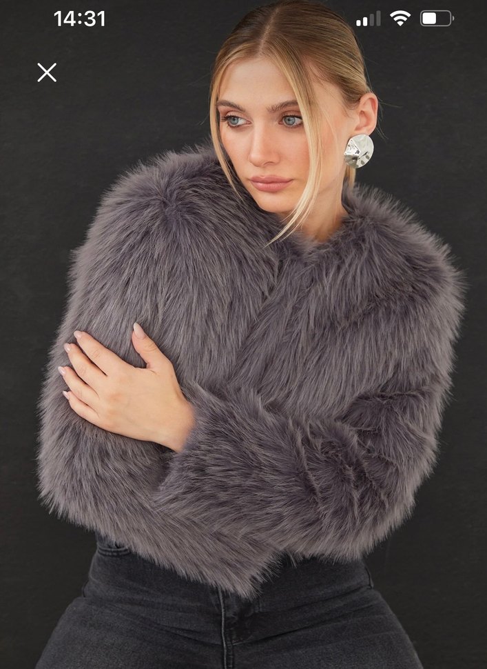 Gri renkli, peluş kürk detaylı bu ceket uzun kollu ve kesik yaka hiç giyilmedi etiketli bedeni küçük için satıyorum olduğu