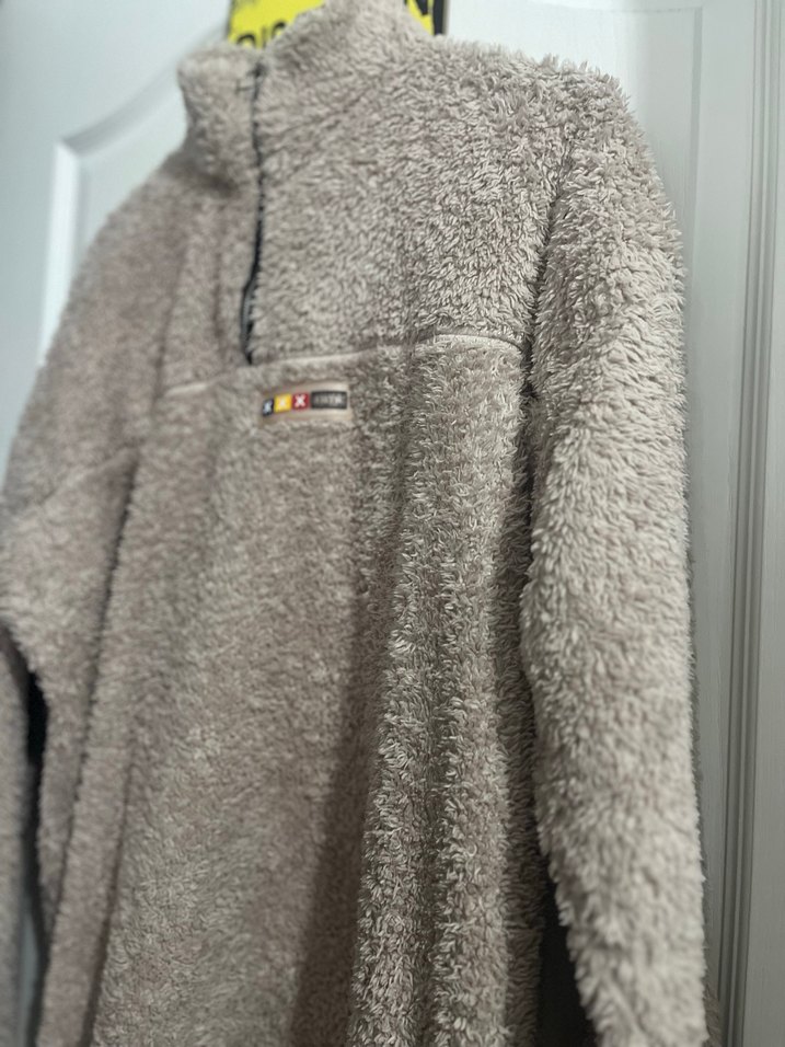 Gri kadın peluş sweatshirt, uzun kollu ve yakalı, bol kesim ve kürk detaylı dokusu ile rahat sokak stili için uygundur.