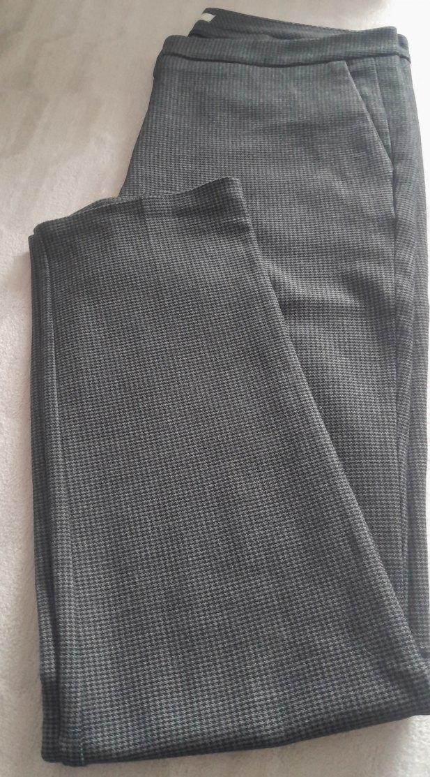 Kadınlar için gri renkli, piti kareli, pamuklu kumaştan yapılmış, normal kesim kumaş pantolon. Ofis kullanımı için uygun, sade ve rahat tarzda.