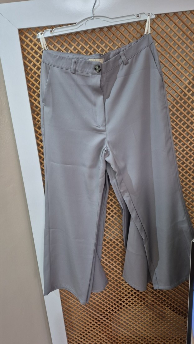 Gri Kadın Piliseli Kumaş Pantolon 36,38,40,42 bedenler mevcut