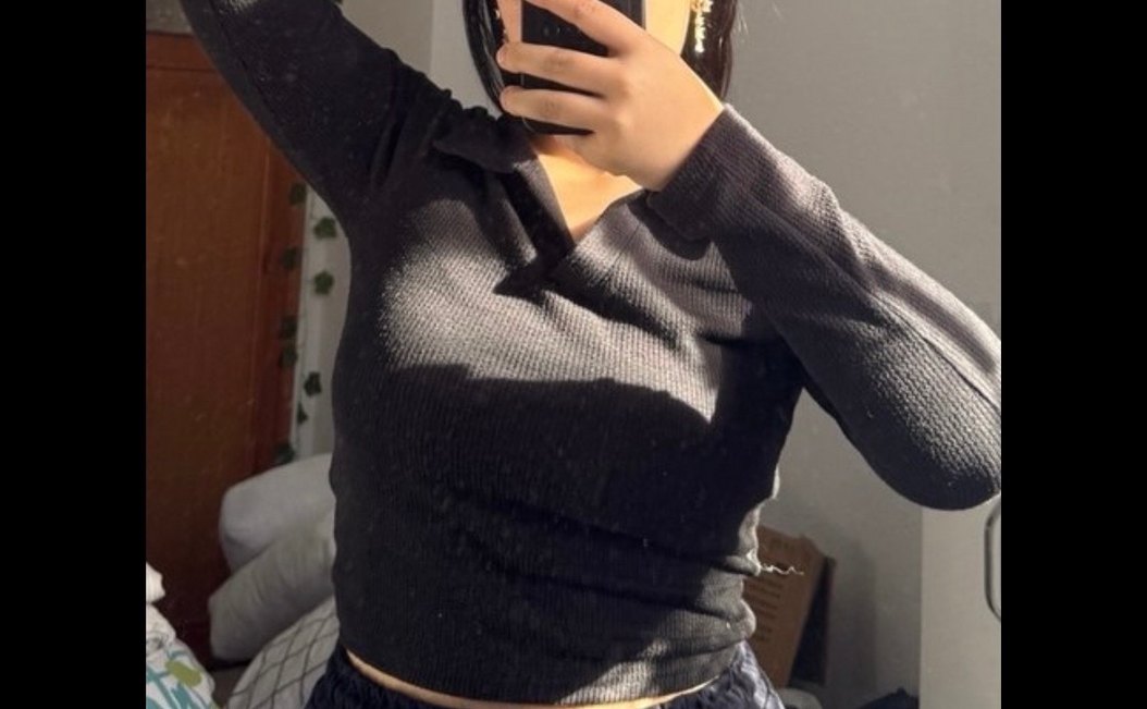Gri renk, polo yaka, uzun kollu, ince ve vücuda oturan kadın triko. Yumuşak sentetik kumaştan, günlük kullanıma uygun rahat ve şık görünümlü.