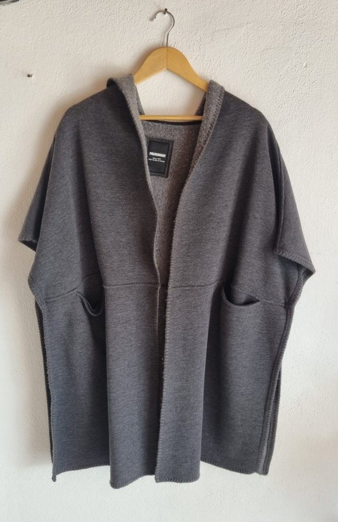 Pologarage Gri Kadın kapüşonlu panço. Yumuşak ve sıcak kumaştan üretilmiş, iki ön cepli ve zahmetsiz şıklık sağlar. Ürün yeni bir defa tek giyildi. içteki etiketi uzun olduğu için kestim. ürünün cok kaliteli kumaşı var.