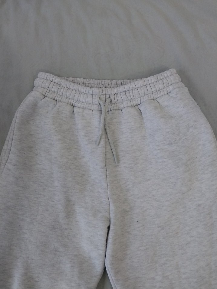 Gri renkte, rahat kesim ve normal boyda, yumuşak ve sıcak kumaştan üretilmiş kadın eşofman altı, spor ve günlük sokak stili için uygundur. ♀️