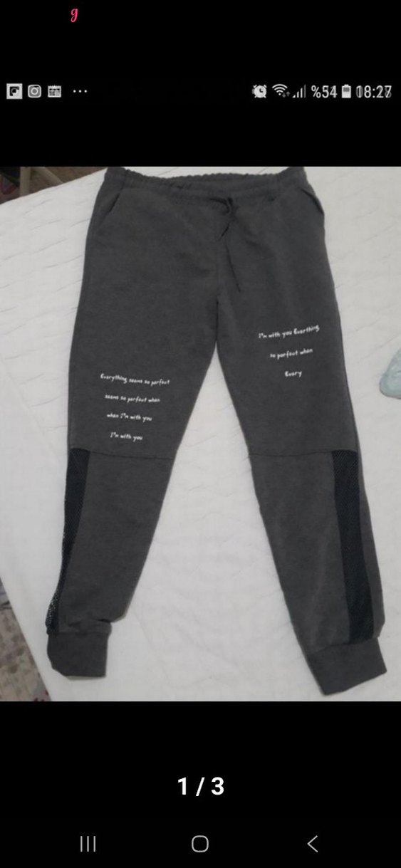 Gri renkli, rahat kesim kadin eşofman altı, yırtmaçlı ve yumuşak dokulu kumaştan. Siyah panel detaylı ve bacaklarında yazı baskısı bulunur. etiketi koparildi fakat sifirdir.Bede sorunsalindsn dolayı satiyorum ,yoksa beğenerek aldim. l ve xl uyumludur. #pantolon #eşofman #bayanpantolon