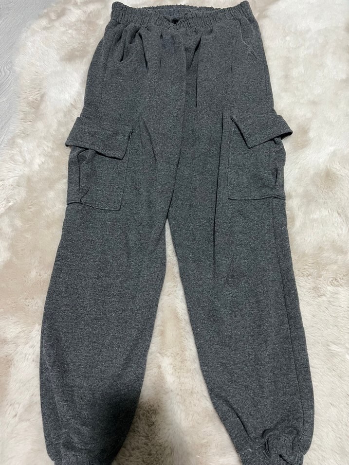 Yumuşak ve rahat kumaştan, cep detaylı, bol kesim gri kadın eşofman altı. Günlük kullanıma uygun.