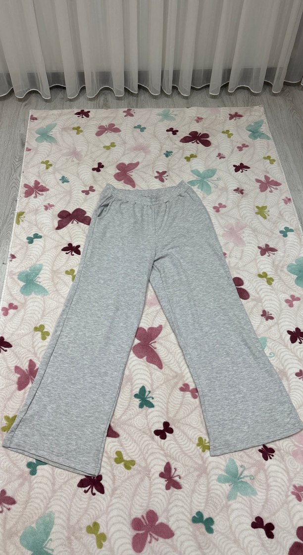 Pamuklu kumaştan, gri renkte, bol kesim kadın eşofman altı. Orta boy ve rahat bel lastiği ile günlük kullanıma uygun, konforlu ve şık.