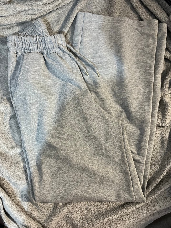 Gri renkte, rahat kesim, lastikli ve bağcıklı bel detayına sahip, yumuşak ve sıcak kumaştan günlük kullanım için eşofman altı.