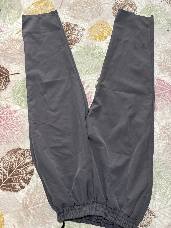 Sentetik kumaştan yapılmış, fermuarlı detaylı gri kadın pantolonu, rahat kesim ve dış mekan kullanımı için uygundur. ️