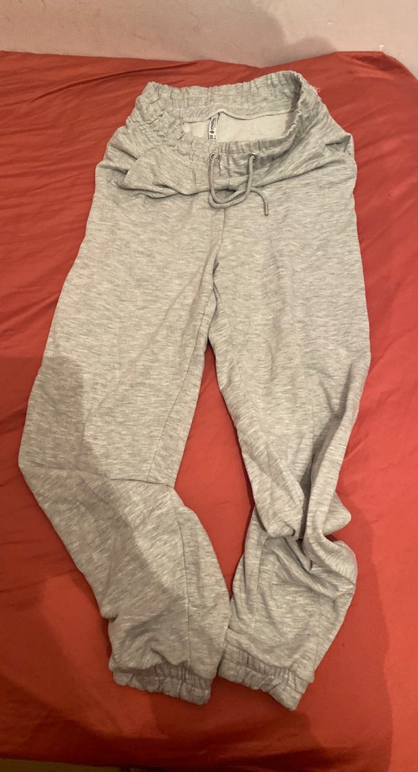 Yumuşak keten kumaştan, rahat kesim, midi boy, lastikli ve bağcıklı bel detaylı gri eşofman. Normcore tarzıyla günlük kullanıma uygun.