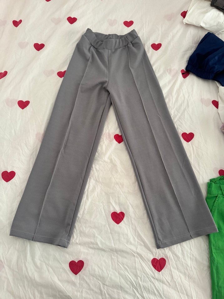 Gri, düz kesim ve uzun boy kadın pantolon, yumuşak sentetik kumaştan. Desensiz tasarımıyla günlük kullanıma uygun, zahmetsiz şıklık sunar 1 kere giyildi yepyeni