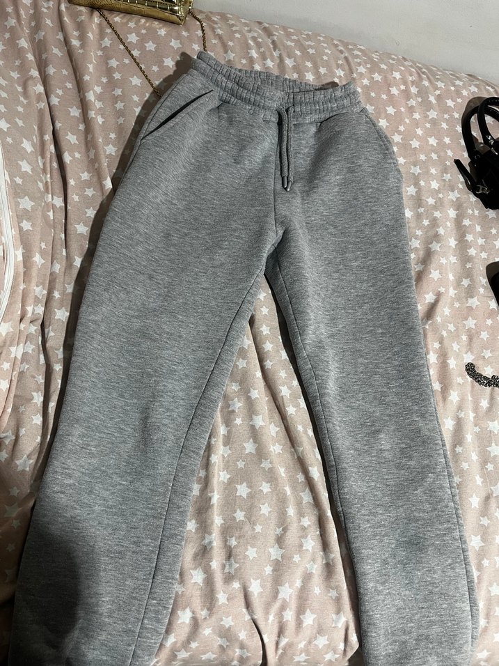 Gri renk, rahat kesim ve normal boyda, yumuşak ve sıcak polar kumaştan kadın eşofman. Kürk detaylı ve yan cepli, günlük kullanım için uygun.