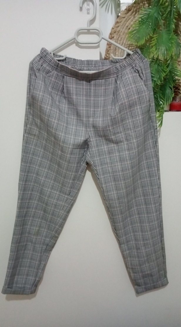 Gri renkli, regular fit kesim, pileli detaylı midi boy kadın kumaş pantolon. Günlük kullanım için rahat ve şık sokak tarzı.