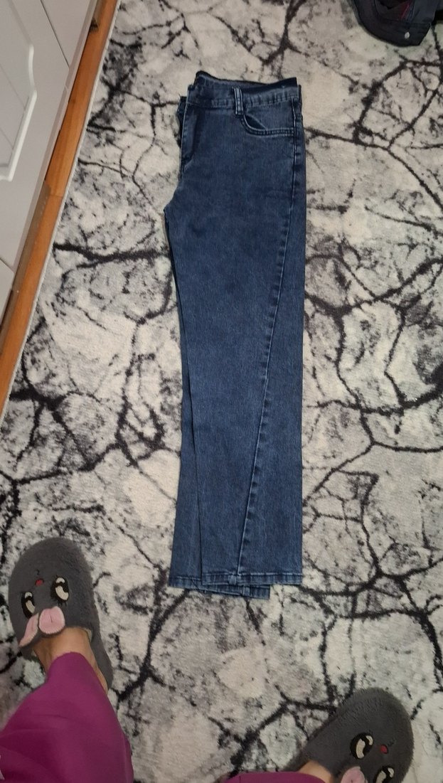 Gri renkte, midi boy ve regular fit kesime sahip kadın denim pantolon, kürk detaylı. Günlük sokak stili için uygundur.