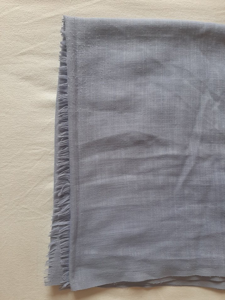 Gri renkte, hafif pamuk kumaştan yapılmış kadın şal. Püsküllü kenarları ve dökümlü yapısıyla bohem ve rahat bir tarz sunar. Katlamak için uygun.