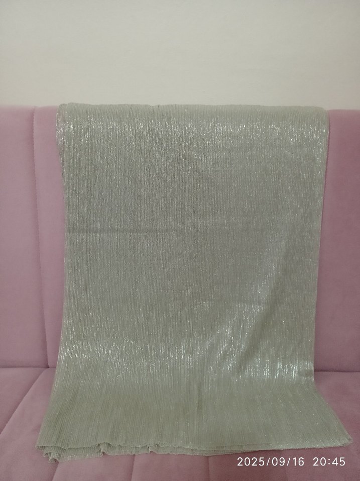 Gri renkte, yumuşak sentetik kumaştan yapılmış, drapeli tasarıma sahip kadın şalı, çağdaş ve rahat bir stil sunar.