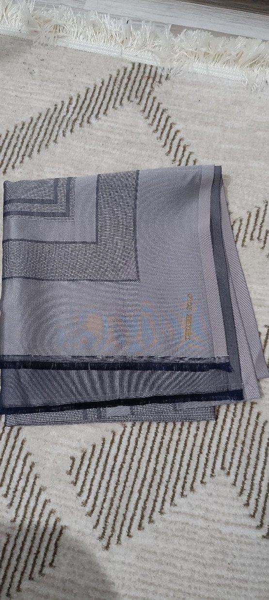 Kadınlar için drapeli tasarıma sahip, yumuşak sentetik kumaştan gri şal. Mütevazı ve modern tarz için uygundur.