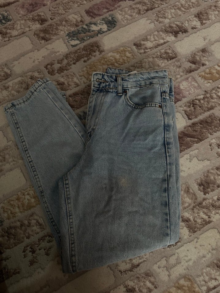 Gri renkte, salaş kesim ve kürk detaylı denim pantolon. Rahat ve şık sokak tarzı için uygundur. ilk fotoğrafta görünen küçük bi leke var belki çıkar