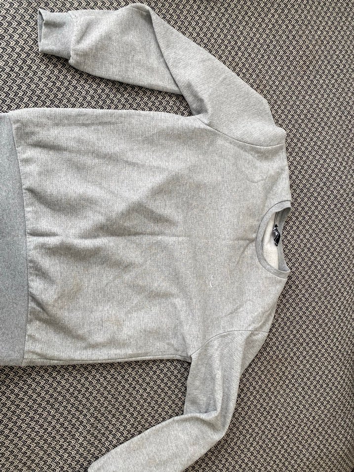 Gri renkli, yuvarlak yakalı ve uzun kollu kadın sweatshirtü, rahat salaş kesime sahiptir. Yumuşak sentetik kumaştan üretilmiş, günlük kullanım için şık ve rahat bir seçenektir. Lacivet olanda hafif sökülme var ama cok belli değil