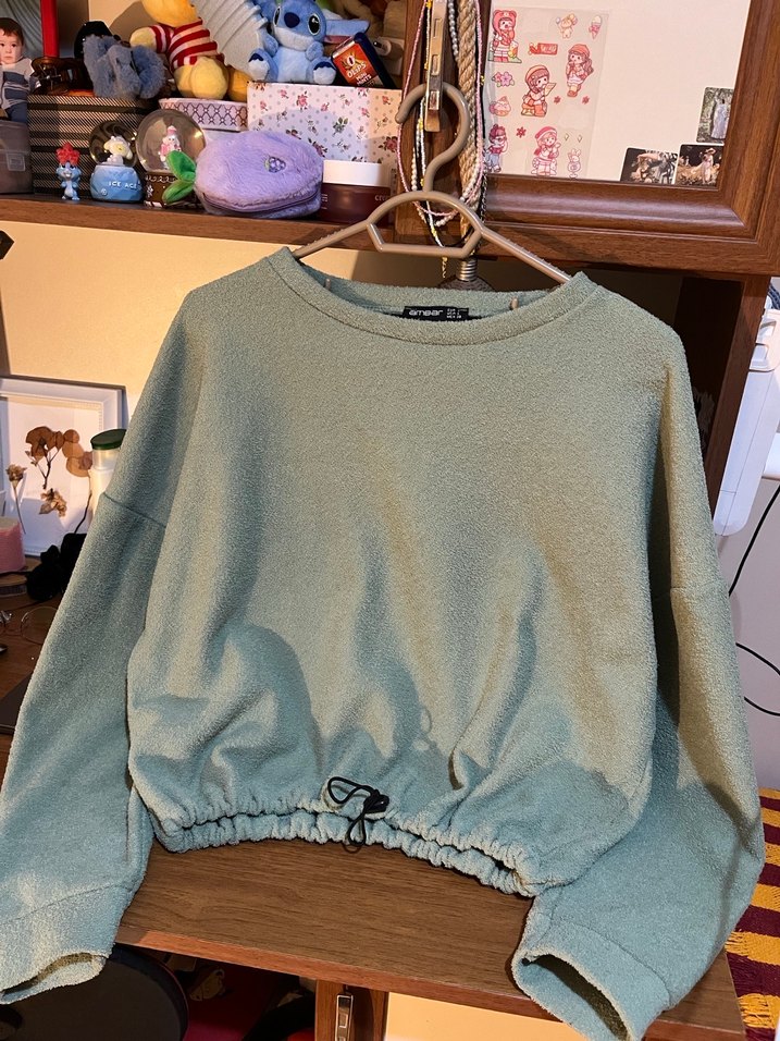 Gri kadın sweatshirt, yuvarlak yaka ve uzun kolludur. Yumuşak ve sıcak kumaştan, salaş kesim ve ayarlanabilir bel detayına sahiptir. Günlük kullanıma uygundur.