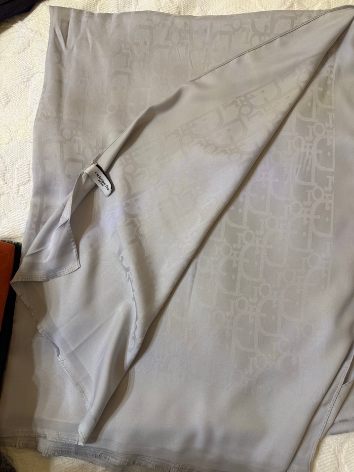 Gri ve beyaz tonlarda, saten dokulu, drapeli kadın şalı. Modern ve sade tarzda, rahat bir kullanım sunar. ️
