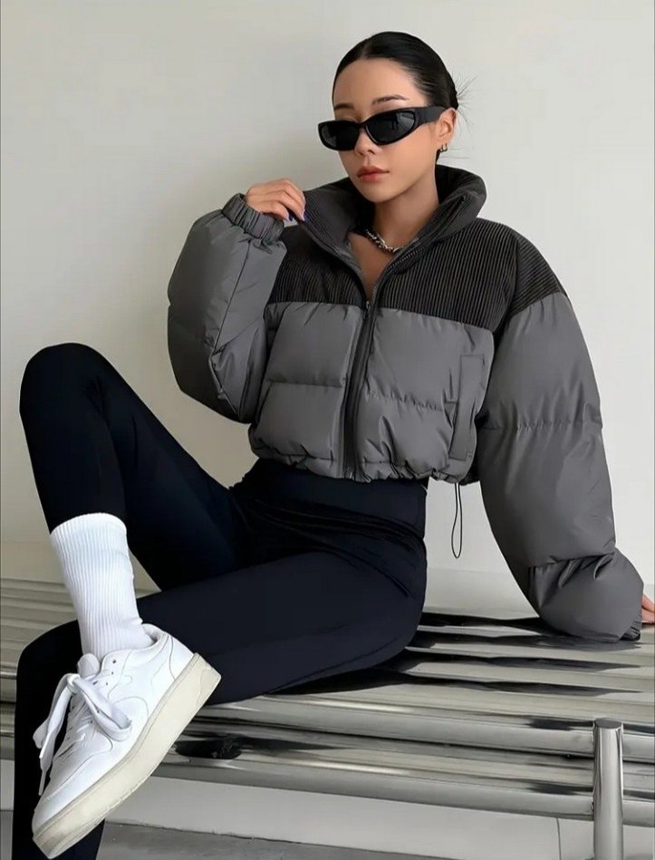 Bu dar kesim gri kış montu, yüksek yakalı ve uzun kollu olup, dolgulu tasarıma sahiptir. Yumuşak ve sıcak kumaştan yapılmıştır, dış mekanlar için uygundur. ❄️
