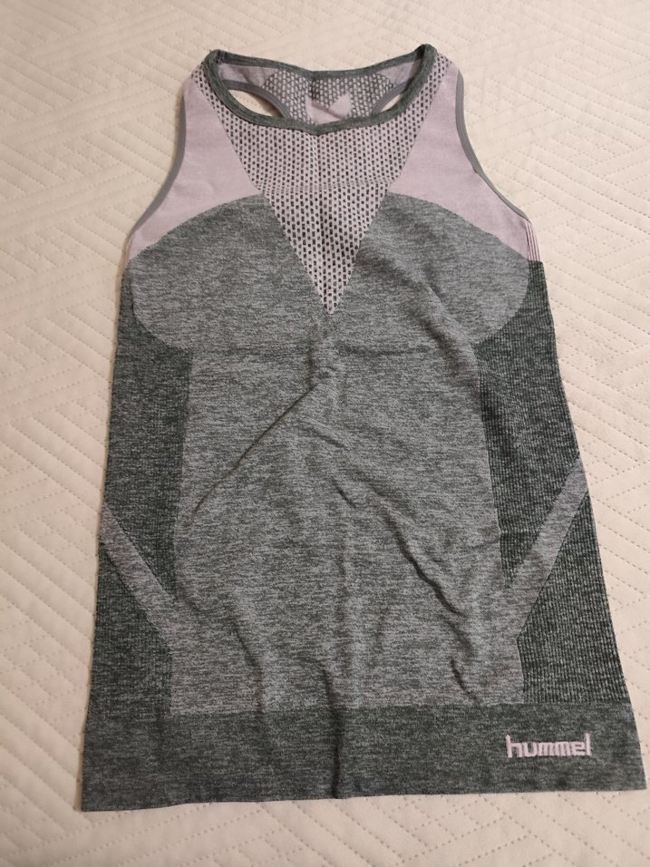 Hummel markalı, yüksek yakalı, vücudu saran gri örme spor atlet, spor ve sokak tarzına uygun. ♀️
