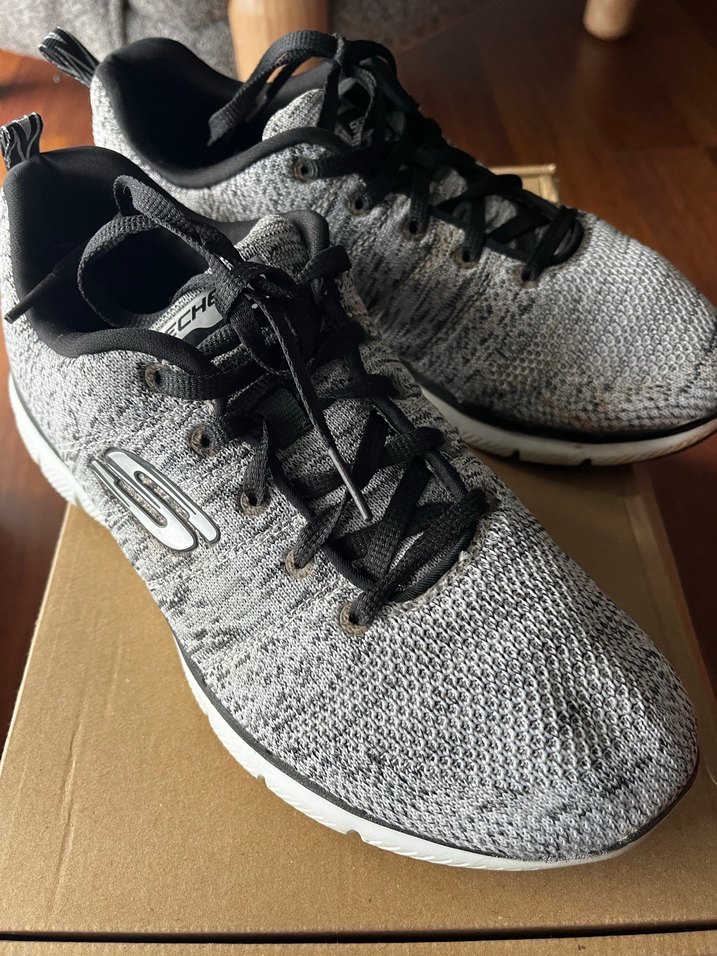 Gri örgü dokulu, ince topuklu ve kauçuk tabanlı kadın spor ayakkabısı, sportif ve trend sokak stili için uygun.