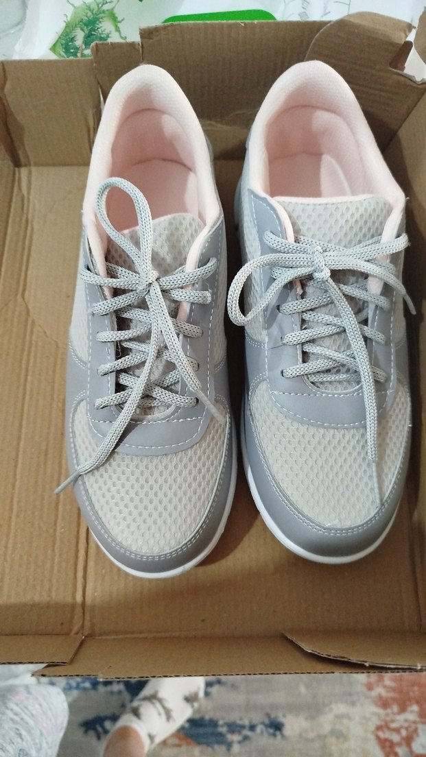 Gri renkli, ve bağcıklı kadın spor ayakkabısı. Kauçuk tabanlı, nefes alabilir kumaşla rahatlık sağlar. aldım olmadı ıkı üç aydır duruyor öyle .
