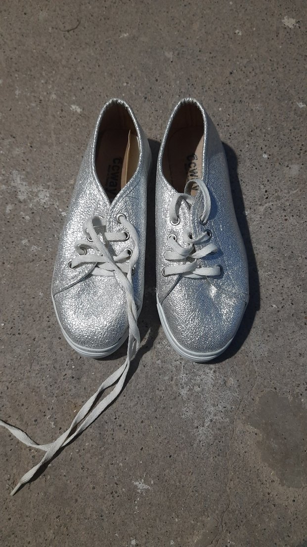 Gri renkte, bağcıklı tasarıma sahip kadın spor ayakkabısı. Kauçuk malzemeden, sokak stili ve trend günlük giyime uygun, desensiz.