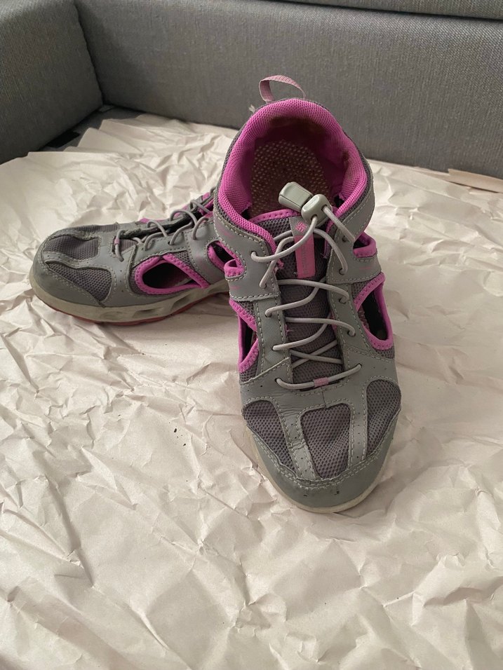 Gri renkte, velcro detaylı, sandalet tarzı orjinal marka ayakkabıdır, ön kısımda biraz yıpranma var fakat giyincs göze batmıyor. 37 no.ya uygun. Temizlenip gönderilecektir