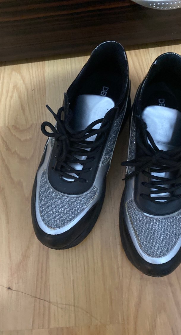 Gri renkli, yüksek topuklu kadın spor ayakkabısı, hafif si detaylı, spor ve sokak tarzı için uygun. Oğlum, hediye almış ama tarzım değil üzülmesin diye bi kaç defa giyildi