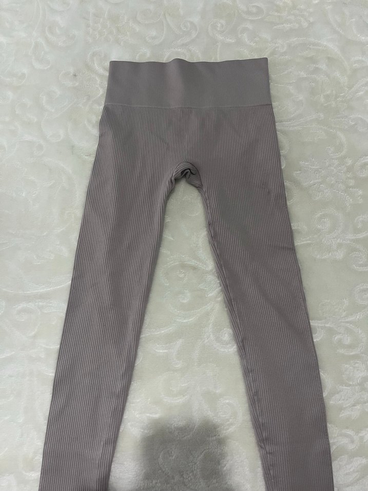Esnek sentetik kumaştan yapılmış, sıkı kesim gri kadın taytı. Orta boy uzunluğu ve spor tarzıyla günlük kullanıma uygundur. ♀️