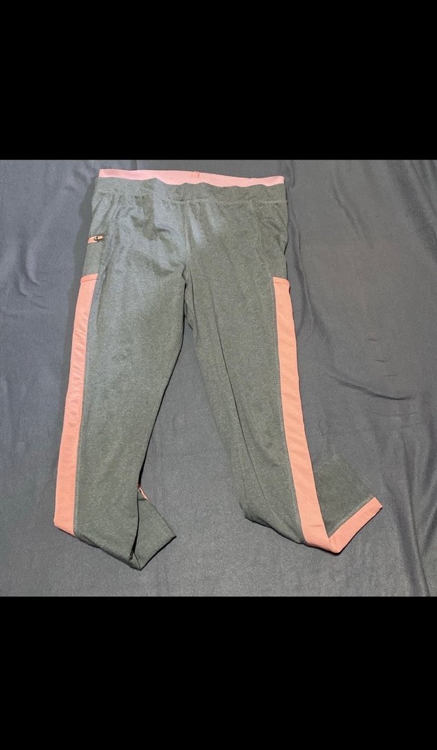 Gri renkli, pembe yan şeritli ve fermuarlı detaylara sahip kadın spor taytı. Yumuşak sentetik kumaştan üretilmiştir, sportif sokak tarzı için uygundur. ♀️