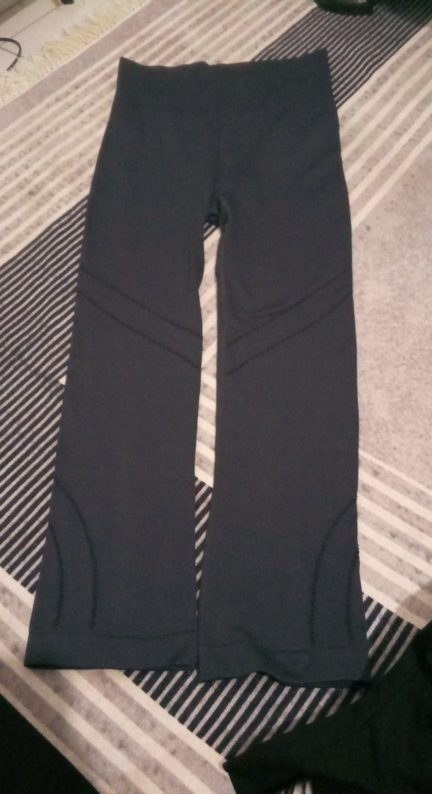 Gri renkli, yırtmaç detaylı, normal boy kadın tayt. Yumuşak sentetik kumaştan, spor ve günlük kullanım için uygundur. ♀️