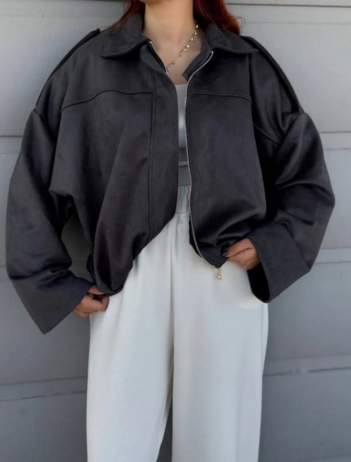Gri Kadın Süet ceket