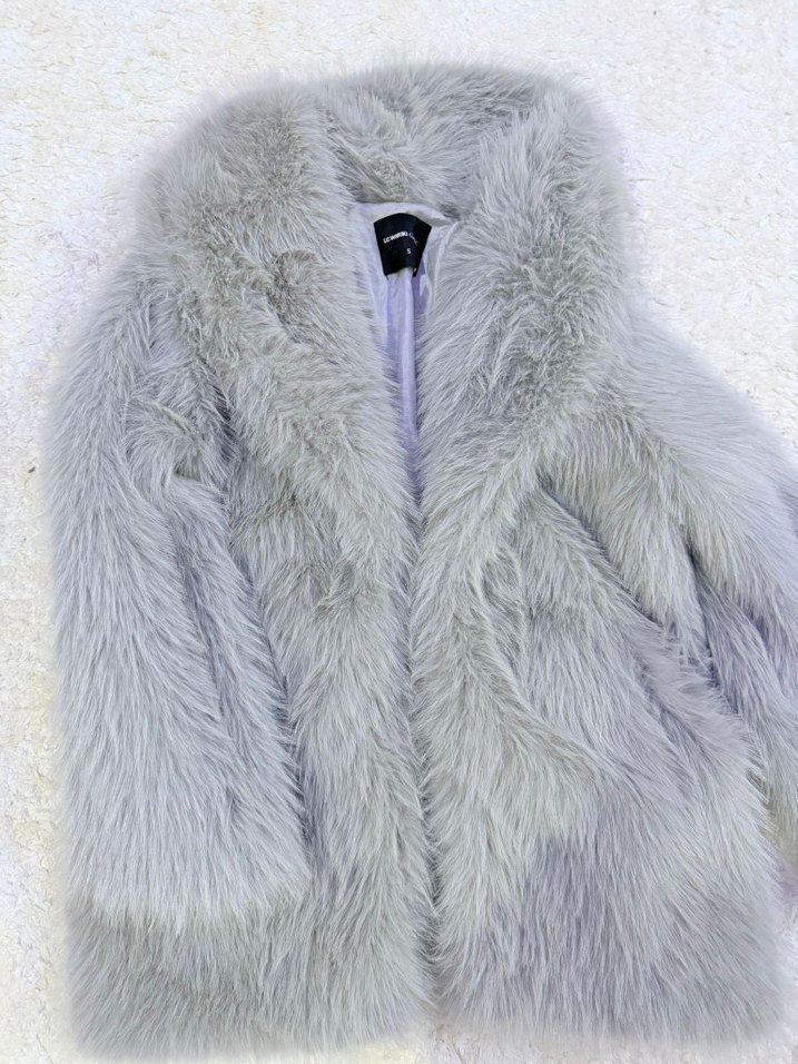 Gri suni kürkten yapılmış, kesimli midi ceket. Notlu yaka ve uzun kollu, rahat ve şık sokak modası tarzında. Hiç giyilmedi