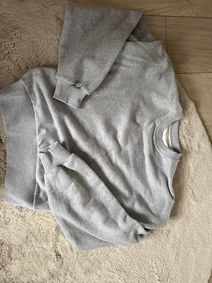 Gri renkte, yüksek yakalı ve uzun kollu, bol kesim kadın sweatshirt. Minimalist ve desen içermeyen tasarımıyla günlük kullanıma uygundur.