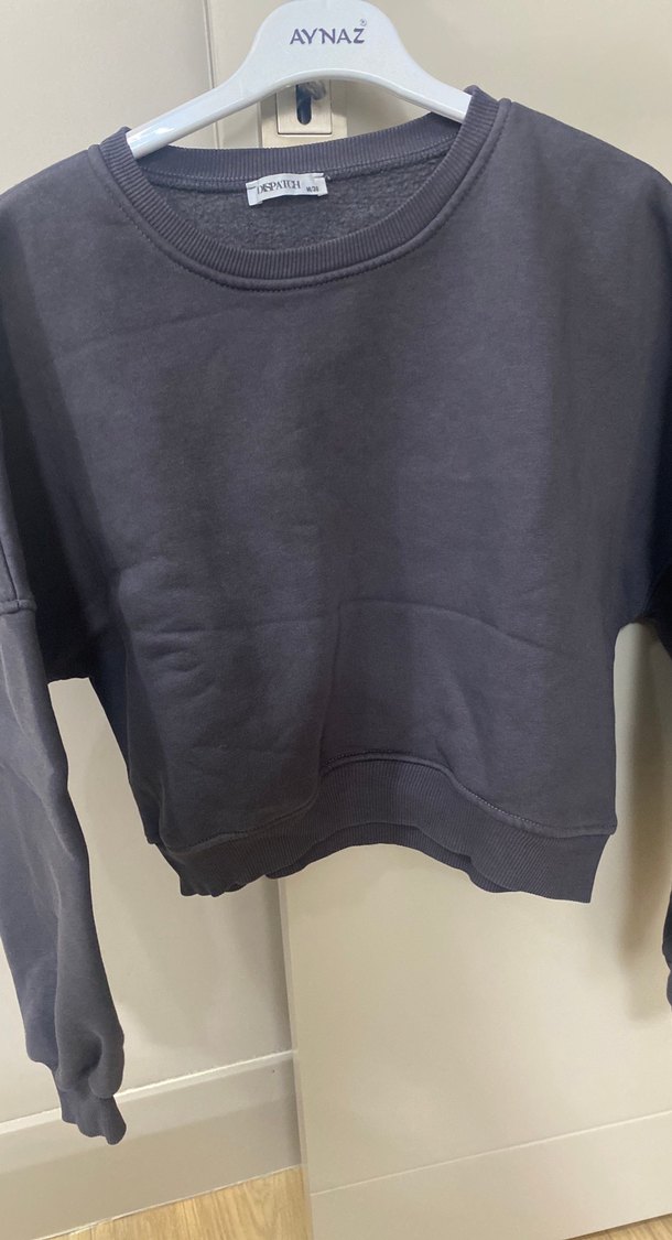 Gri renkli, yuvarlak yakalı ve uzun kollu kadın sweatshirtü. Rahat kesimi ve yumuşak kumaşıyla günlük kullanım için uygundur. Düz ve desensiz tasarımıyla sade bir şıklık sunar.
