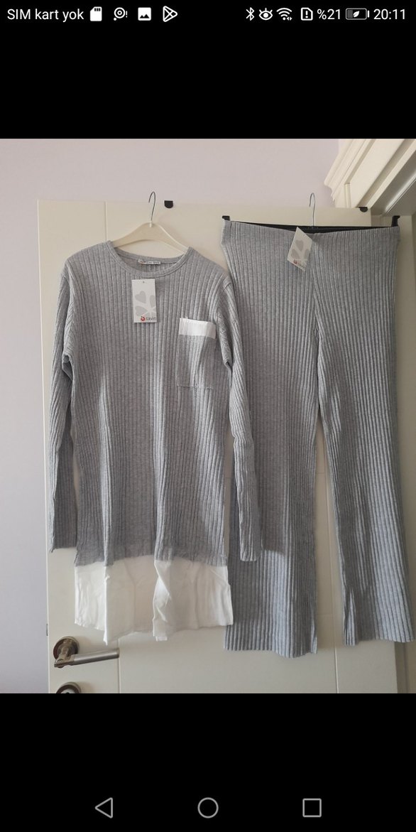 Gri renkte, rahat kesim ve midi boyda kadın takımı. Yumuşak pamuk kumaştan, uzun kollu ve bisiklet yaka üst ile uyumlu pantolondan oluşur. Günlük kullanıma uygun rahat stil.
