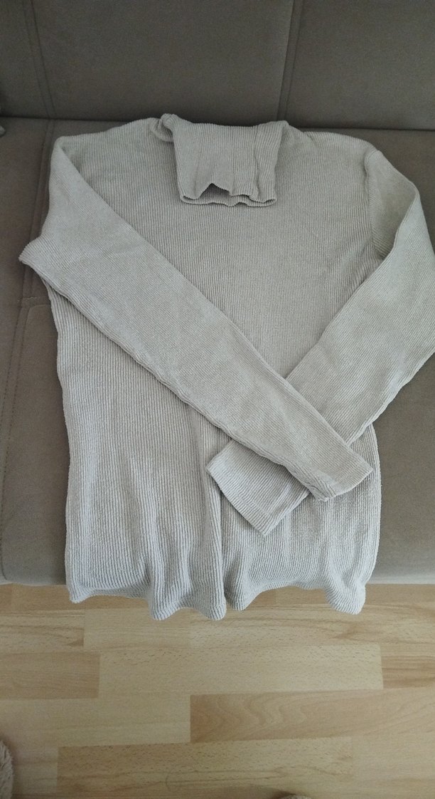 Gri renkte, triko dokulu, balıkçı yakalı ve uzun kollu kadın kazak. İnce ve yumuşak keten kumaştan, normal uzunlukta ve vücuda oturan kesimde, günlük kullanım için uygun.