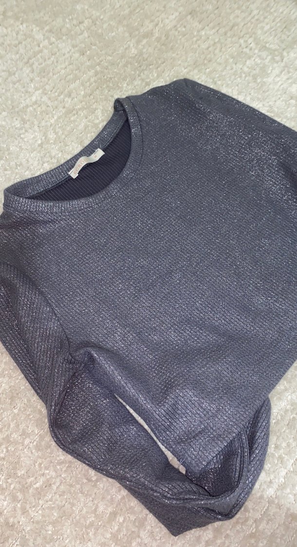 Gri Kadın Triko Bisiklet Yaka crop - Görsel 3