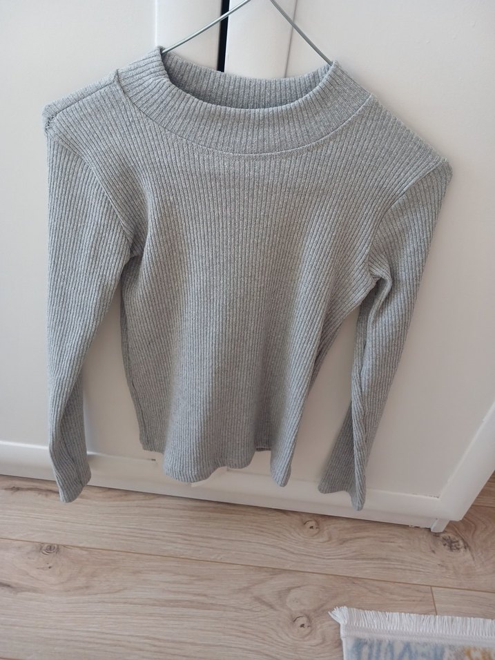 Gri renkte, bisiklet yaka ve uzun kollu, vücuda oturan kadın triko kazak. Normal boyda ve rahat dokulu, günlük kullanıma uygun. boy 51 iki koltuk arası 38.2 saatliğine kullanıldı birdahada kullanılmadı.esnek yepyeni duruyor